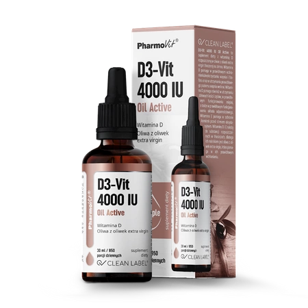D3-Vit 4000 IU Oil Active е разработен за здрави хора над 75-годишна възраст, които искат да се погрижат за своя имунитет, мускулна сила и добро състояние на костите по начин, който е безопасен и съвместим с нуждите на зрелия организъм. Това е натурална хранителна добавка с витамин D3 и Е - без излишни добавки, за съзнателни възрастни хора.