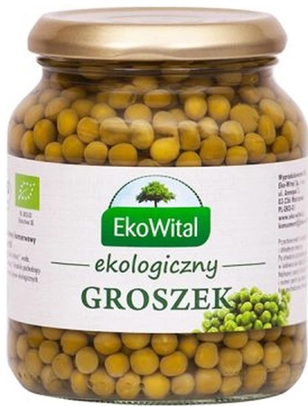 EkoWital разпространява и внася органични и натурални продукти. BIO зелен грах в марината в буркан. Грахът съдържа значителни количества витамини от група В, особено витамин В3, който влияе върху понижаването на нивата на холестерола в кръвта. Освен това съдържа витамин К, който помага на кръвта да се съсирва правилно. Бурканът е безопасна опаковка - неговите микроелементи не проникват в храната. След като се изпразни, може да се използва повторно. Грахът в буркан е с по-ниско съдържание на сол в сравнение с подобни консервирани продукти.