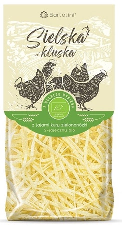 Bartolini Sielska Kluska с яйца от зеленоноги кокошки е екологична селска юфка с изключителен вкус и качество. Произведена с яйца от зеленоноги кокошки, отглеждани в естествени, екологично чисти условия, тя е идеална за традиционни супи, бульони и домашни ястия. Пълноценен вкус, вдъхновен от идиличната традиция.