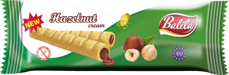 КОМПЛЕКТ 24 x Тубички с пълнеж от царевичен крем с вкус на лешници без глутен 18g - Balila