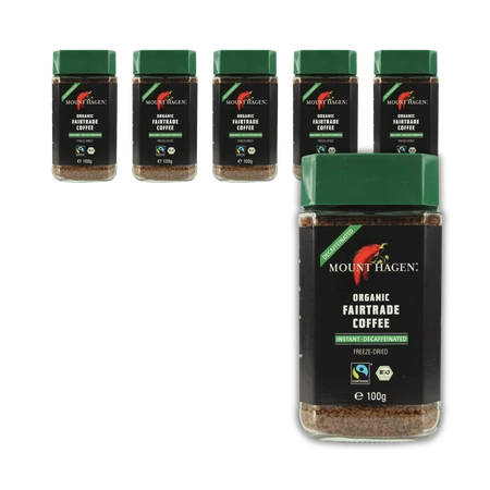 КОМПЛЕКТ 6 x Разтворимо кафе без кофеин от арабика/робуста от справедливата търговия BIO 100 g - Mount Hagen