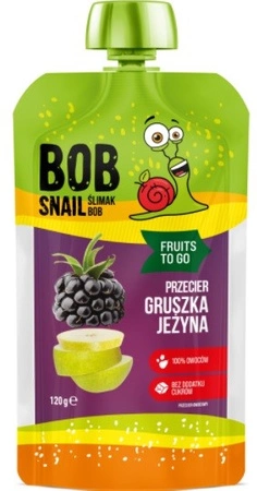 Този коктейл от круши и къпини представлява кремообразен мус на сладка плодова основа, затворен в практично пакетче. Гъст и хранителен коктейл за случаите, когато ви се прииска нещо сладко. Удобната опаковка означава, че винаги можете да имате мус под ръка. Като посегнете към смутито Bob Snail, ще си осигурите порция плодове, които са източник на фибри и антиоксиданти, благоприятстващи здравето. Продуктът е изцяло на плодова основа, без добавена захар или вредни консерванти.