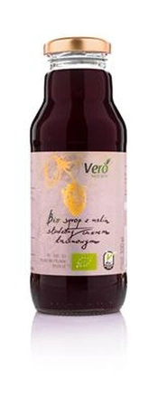 Истински БИО малинов сироп. Прост състав. Съдържа органичен малинов сок и органична тръстикова захар. Продукт на малка полска семейна работилница. Продуктът притежава сертификата VIVA, което означава, че може да се консумира от вегани и вегетарианци (не много сокове в Полша притежават този сертификат). Подходящ е за сезонни настинки и се приема като добавка към десерти, чайове и напитки.
