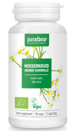 прахообразни листа от златен маран* (Tanacetum parthenium), хидроксипропилметилцелулоза (капсула). (*сертифицирана органична съставка)