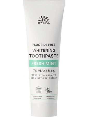 Представяме ви избелващата паста за зъби Fresh Mint BIO от 75 мл, която е не само ефективна, но и щадяща околната среда и здравето. Нашата паста за зъби е разработена така, че да укрепва емайла и да осигурява естествена защита на устната кухина. Със сертификата Ecocert Cosmos Organic сте сигурни, че продуктът е напълно веган и е получен от естествени съставки. Идеален за тези, които са загрижени за здравата си усмивка и за околната среда.