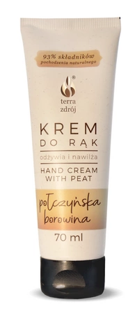 Подхранващият крем за ръце от серията торф на TERRA ZDRÓJ е отличен избор за тези, които се борят със суха и груба кожа на ръцете. Продуктът, благодарение на богатата си формула, интензивно овлажнява, подхранва и омекотява кожата, като същевременно я смазва и изглажда. Редовната употреба на крема подобрява цялостния вид и състояние на кожата, намалява сухотата и осигурява усещане за регенерирана кожа. Кремът съдържа екстракт от торф, който се извлича от находището Bronowo на Połczyn Spa Group PGU S.A., което допълнително подчертава неговите естествени и терапевтични свойства.