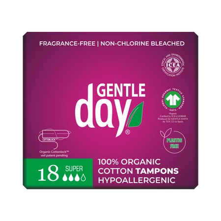 Тампоните от 100% органичен памук са идеални за жени, които се грижат за здравето си и за околната среда. Изработени от сертифициран органичен памук, те не предизвикват дразнене на кожата, вагинална сухота или алергични реакции. Абсорбиращата им памучна основа е допълнително защитена от хипоалергенна "защитна мрежа", която предотвратява отделянето на влакната и прави тампоните гладки. Нещо повече, тези тампони са биоразградими, което означава, че са щадящи околната среда.