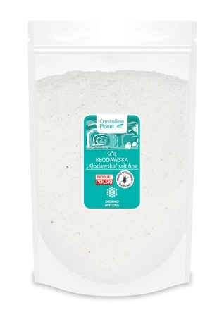 Сол: Kłodawska е отлична алтернатива на трапезната сол. Нерафиниран, не съдържа антислепващ агент.