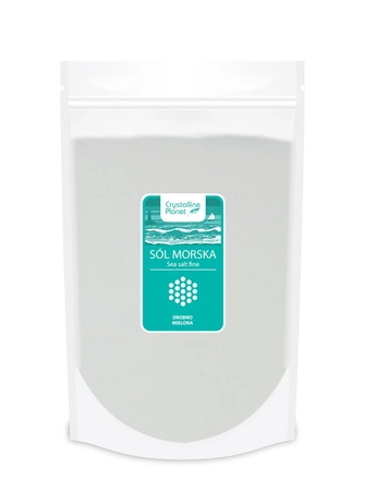 морска сол, фино смляна 100%, нерафинирана. Не съдържа антислепващ агент.