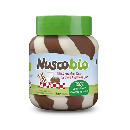 Дуо кремът с лешници и какао на NUSCOBIO с нетно тегло 400 г е уникално предложение за всички любители на сладките закуски. Продуктът се характеризира с интензивен, уникален вкус на лешници, мляко и какао. Той е идеална добавка към много торти и десерти, както и отличен топинг за палачинки, препечени филийки и сандвичи. Закуската с този крем осигурява много енергия, идеално начало на деня.