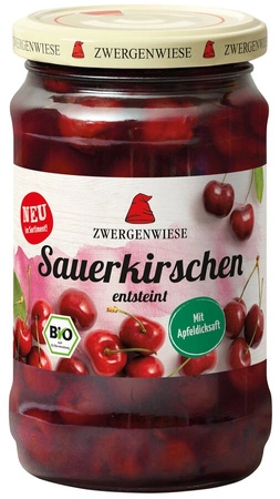 Черешите в лек сироп на ZWERGENWIESE са органични плодове с костилки, готови за консумация, потопени в деликатен ябълков сироп. Продуктът е сертифициран като биологичен, което гарантира неговото най-високо качество и естественост. Тези череши са идеални за използване в различни торти, десерти или като здравословна, бърза закуска. Благодарение на процеса на изчистване от костилките те са без семки, което значително улеснява консумацията им и приготвянето на ястия. Продуктът е веган, вегетарианец и не съдържа глутен, което го прави подходящ избор за хора с различни диетични предпочитания и изисквания.