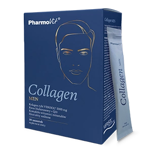 Collagen MEN to suplement diety dla mężczyzn, który w swoim składzie zawiera hydrolizowany kolagen rybi VERISOL® (2000 Da), kwas hialuronowy, koenzym Q10, ekstrakty roślinne oraz witaminy i minerały.