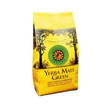 Yerba Mate Green FRUTAS е йерба мате, обогатено със сушени плодове. Основата на сухата напитка е зелено мате, бразилски сорт йерба мате, изсушен без използване на дим, което води до фин и дълбок вкус. Деликатният вкус на зеленото мате се допълва от плодова смес, която включва листа от ягода, годжи бери, портокалови кори, сушени боровинки, черница, касис и малина. Сушената смес е източник на витамин С и микроелементи. В резултат на това настойката помага в борбата с настинките и подобрява имунитета, което я прави добър избор за есента и зимата.